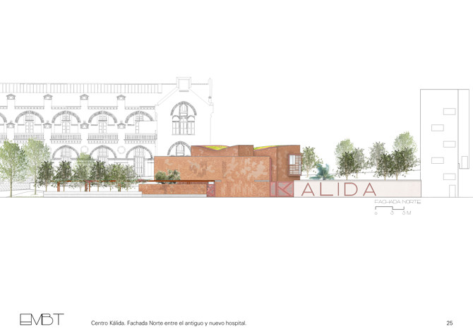 Tagliabue, que ayudó a su marido Enric Miralles a superar el diagnóstico y el tratamiento de un tumor cerebral, entiende perfectamente el valor curativo de los edificios bien diseñados. El diseño es el de un pabellón ajardinado en el que se difuminan los límites entre el espacio interior y el exterior. Kálida se ubicará en un solar situado entre el Hospital Sant Pau y el Patrimonio modernista.