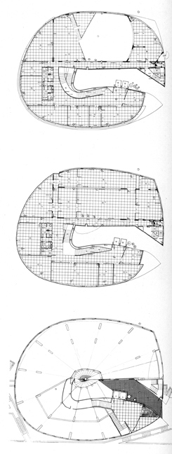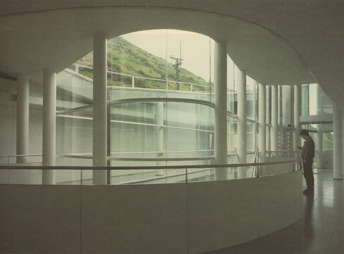 En este medio físico la arquitectura rural, tanto aislada como conjuntos limitados (caseríos y aldeas) ―en tanto su escala Se mantenga en estos órdenes integra en el paisaje como un material añadido a la topografía y la vegetación. El edificio se proyecta sobre este lugar como un objeto de pequeña escala -25 X 25 X 12 metros distanciado de las otras piezas arquitectónicas existentes para eludir los problemas de relación dimensional, contraste formal y formación de conjuntos de edificios. El tratamiento formal y espacial del proyecto obedece a construir un espacio sin fachadas, definiendo lo construido como una superficie continua muy limitadamente perforada por los huecos funcionales de cada espacio interno. Esta superficie O fachada continua se interrumpe a ambos lados de la penetración general a manera de gran puerta a través de la que se vislumbra toda la organización del edificio. La Superficie casi cilíndrica exterior y la hendidura interna constituyen el material arquitectónico con el que se organiza el espacio y el lenguaje formal del proyecto. El carácter del vocabulario arquitectónico es voluntariamente no habitacional. El tratamiento de la Superficie exterior en capas levemente desplazadas, persigue la rotura de las convenciones de la arquitectura de niveles, valorando el dintel de los huecos como elemento fundamental en la formalización del espacio interno y su expresión externa. La directriz Casi cilíndrica tiene, no obstante, un trazado a mano alzada, que reconocemos personal.