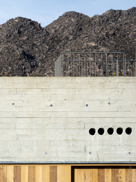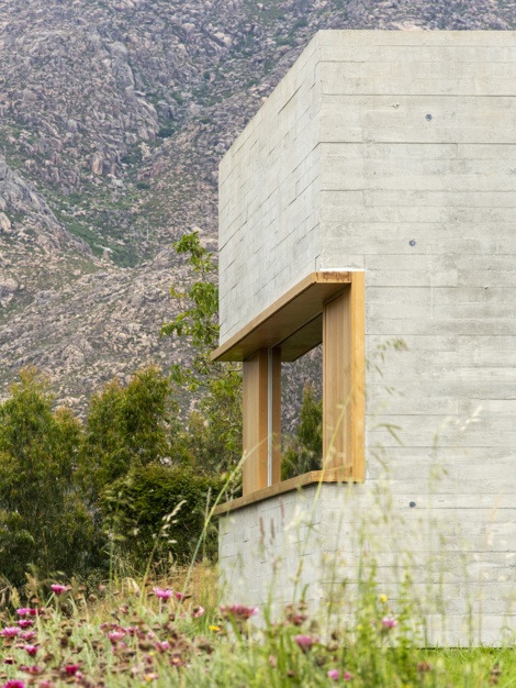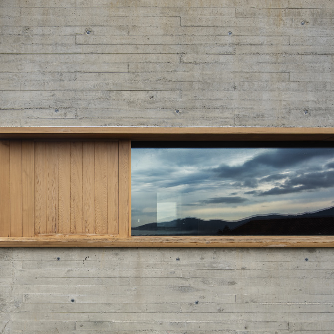 Estructura: Losas y muros de hormigón. Fachada: Hormigón visto (Encofrado tabla) con carpinterías de aluminio y cedro. Pavimento: Hormigón y resina. Escalera: Hormigón visto. Cubierta jardín.