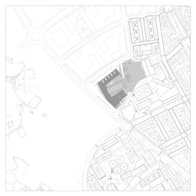 Ágora, como su mismo nombre indica, debe ser lugar accesible y abierto para la reunión de los ciudadanos y su expresión cívica. Este carácter público y colectivo enfrenta a la arquitectura necesariamente con un doble reto: de un lado, su programa es complejo y múltiple, abarcando desde la cultura, la administración, la reunión, el espectáculo y los servicios sociales. De otro, aun siendo un edificio, su verdadera vocación está ligada y próxima al concepto y a las cualidades de una plaza. Por ello, proponemos una arquitectura diáfana, cuya estructura espacial, programática y de circulación se imbrican con el entorno urbano que le rodea.