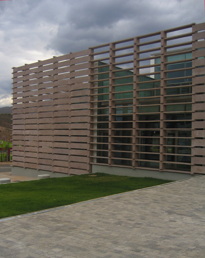 La propuesta se reitera en la integración contextual basando su materialización en sistemas constructivos prefabricados e industrializados, potenciando la continuidad práctica y simbólica con su entorno, facilitando su ejecución, mejorando el rendimiento económico y reduciendo costes de mantenimiento. Proponemos un sistema constructivo y estructural repetitivo y prefabricado, junto con una ordenación planimétrica en bandas homogéneas. La combinación de ambos, cuidadosamente manipulada, es capaz de producir diversidad espacial dentro de los límites de la homogeneidad constructiva, generar espacios diferenciados y ambientes específicos para cada área de trabajo, controlar el nivel de privacidad y graduar la accesibilidad.