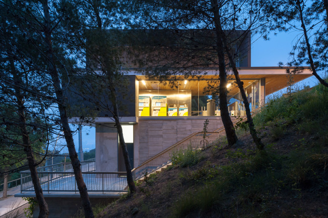 Adicionalmente, la renovación de las instalaciones del antiguo teleférico con la mejora de la capacidad, funcionalidad y seguridad, acerca los Cims a la ciudad con el atractivo de unas magníficas vistas. Las nuevas estaciones, de carácter abierto e integradas en el parque, enlazan con el funicular de Montjuïc y el Mirador de l'Alcalde, un espacio existente que se restaura y renueva.