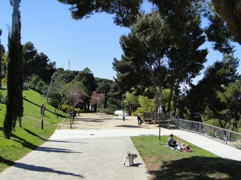 El “Passeig dels Cims” es un recorrido planteado a partir de la reordenación de la vialidad existente y de espacios sin uso definido, priorizando la circulación peatonal y el descanso. Transforma el uso y el carácter de las plataformas de los aparcamientos del antiguo Parque de atracciones, entrelazándolas con escaleras y rampas hasta constituir un nuevo itinerario adaptado, entre la vegetación existente, adecuadamente inscrito en las fuertes pendientes del lugar.