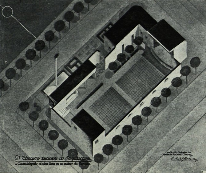 1º. Por la composición general, por el sometimiento a las condiciones climatológicas, por el acierto del carácter y por su holgado presupuesto, hemos decidido elegir el trabajo del SR. Aníbal Álvarez “Proyecto de cinematógrafo al aire libre”, cuya solución es la más ajustada al espíritu de las bases, según entendemos.