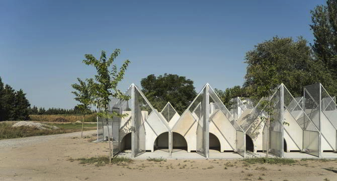 ‘Ciudad de Perros’ es un prototipo de refugio temporal para animales en situación de abandono y precariedad sanitaria. Basado en un sistema prefabricado de expansión ilimitada que permite crecimiento según demanda, su configuración en cheniles con patios individuales permite optimizar costes y dotar a cada uno de espacio al aire libre, a la vez que genera patios de uso compartido por especies que fomentan la convivencia en estrecha relación con el entorno natural. Se redefinen escalas, recorridos y formas de habitar colectivas para favorecer la recuperación y la integración gracias al sentido de pertenencia y a la apropiación de un hábitat que se adapta a quien lo habita.