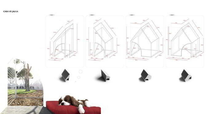 Dentro de esta innovadora configuración, planteamos sustituir las tradicionales jaulas metálicas o estructuras cerradas de ladrillo, rígidas y estáticas, por un sistema más flexible y humanizado. Inspirados en la clásica caseta de perro, diseñamos módulos habitacionales prefabricados optimizados para su fabricación en serie.