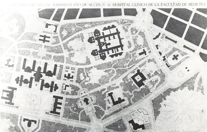El Hospital Clínico era uno de los primeros en España de gran extensión donde las premisas del movimiento moderno apoyaban los criterios contemporáneos de atención al cliente, avances médicos y formación universitaria. La organización racional en planta, la claridad de los recorridos, el análisis de las orientaciones y los principios higienistas aplicados, que incluían soláriums, fueron pioneros en su momento.