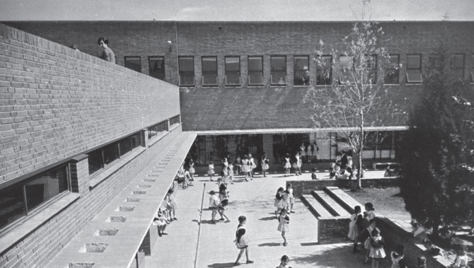 Edificio escolar que recoge, con un acento racionalista, las nuevas formas que se anunciaban para los años 60: espacios modelados según la diversidad de usos y una evolución estilística más fragmentada, haciendo evidente la puesta en crisis del lenguaje tradicional del primer racionalismo.