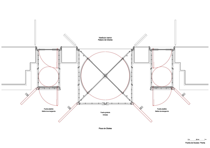 En definitiva, el proyecto pretende ser respetuoso con el Palacio de Telecomunicaciones a través de una serie de intervenciones que valoran la escala, el color, los materiales y la luz existentes en el edificio, para dotar de una nueva actividad al patio de operaciones donde se superponga un programa cambiante y atractivo, que conviertan elc en un referente cultural de la ciudad de Madrid.