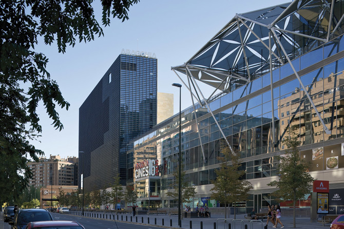 La arquitectura de Aragonia refleja la disparidad del programa –residencia, oficinas, hotel, centro comercial, supermercados, cines, aparcamientos, etc.–, habiéndose optado por manifestar los distintos usos desde una volumetría a la que da continuidad el empleo de un material singular, la cerámica vidriada.