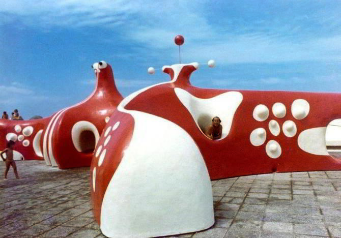 Proyectan tres piscinas de forma circular, la más grande con un bar en el interior del vaso, accesos sobre el agua y un gran mástil de 25 metros de altura que simula el amarre de la estructura. También se proyectan vestuarios, oficinas y cocinas.