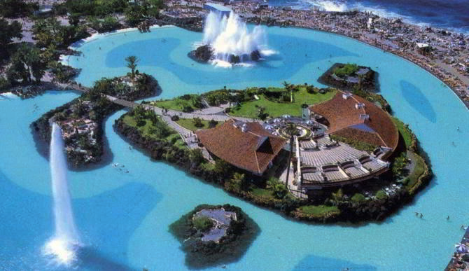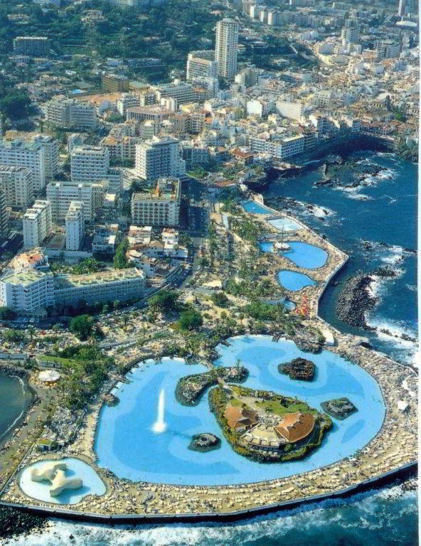 Martiánez es un complejo de ocio situado en el litoral del Puerto de la Cruz, obra de los ingenieros Juan Alfredo Amigó y José Luis Olcina junto a César Manrique, más de 30.000m2 de terrenos ganado al mar de piscinas, bares y una sala de espectáculos entre vegetación exuberante y obras del artista.