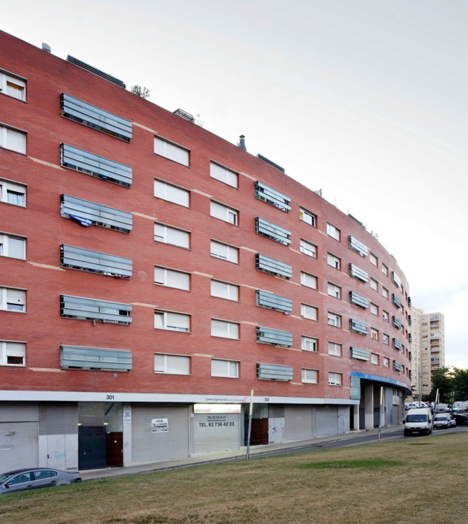 Junto a una gran avenida que separa un vacío urbano de la ciudad edificada, el edificio se despliega en forma curva como un único cuerpo de 280 metros de longitud. El conjunto queda definido como un edificio largo y dos pequeñas construcciones finales que permiten entender la escala y las dimensiones unitarias del bloque lineal.