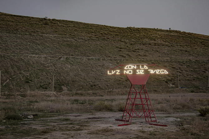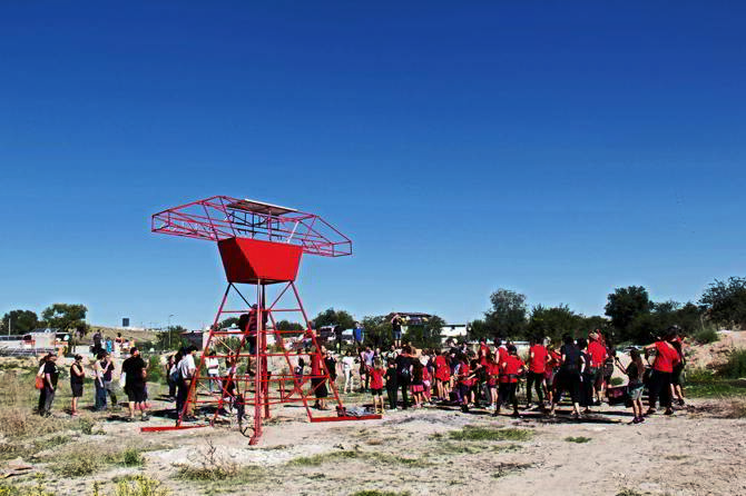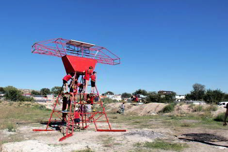 Es por ambas razones que planteamos la posibilidad de que los niños y niñas de La Cañada puedan contar con un espacio para jugar, donde además puedan reivindicar las demandas de mejora y dignidad para su entorno. Para ello construimos un primer playground para una zona de juegos que combine la interacción con el mobiliario con la producción de un mensaje que visibiliza la problemática de la luz en La Cañada.