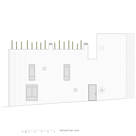 A partir del patio, se experimenta con la tipología para asemejar la residencia temporal a la idea de casa, en la que la fluidez y la relajación de los límites dentro/fuera construyan las relaciones espaciales y ambientales. Así, el tránsito del exterior al interior y la secuencia de espacios libres –patio, zaguán, galerías y azotea– organizan el edificio, ofreciendo un espacio abierto continuo en sección desde la calle al paisaje de las cubiertas.