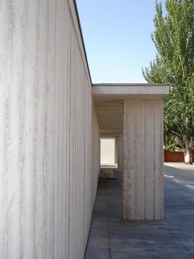 En este paisaje, el proyecto cualifica un espacio residual. Crea un lugar que permite ser el escenario de algo trascendente y doloroso, un paso cargado de emociones y recuerdos. El pequeño edificio, su minúsculo jardín, los muros de hormigón, el patio... permiten que este momento, intenso, pueda ser vivido con dignidad también en este entorno.