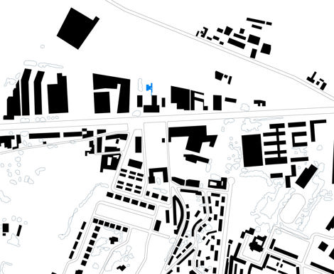 Un polígono industrial se desarrolla a lo largo de la carretera. Entre concesionarios, chatarrerías, naves semiderruidas y un lavado de coches... se encuentra el tanatorio San José en Valladolid. En este contexto, al fondo de la parcela, se sitúa el nuevo crematorio.