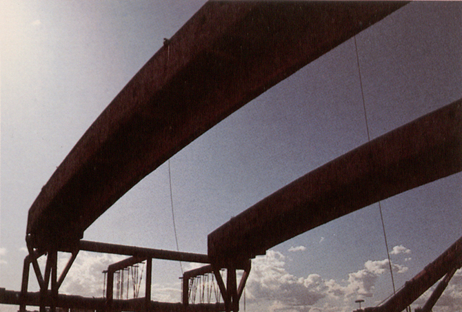 El conjunto del nuevo recinto ferial presenta una estructura básicamente longitudinal, configurada con una gran cubierta de 70 m de luz formada por unas vigasarco de hormigón armado y postesado, apoyadas sobre dos bandas estructurales laterales de 10 m de crujía en el lado Oeste y 20 m en el este.