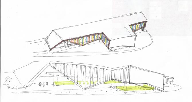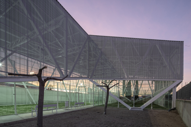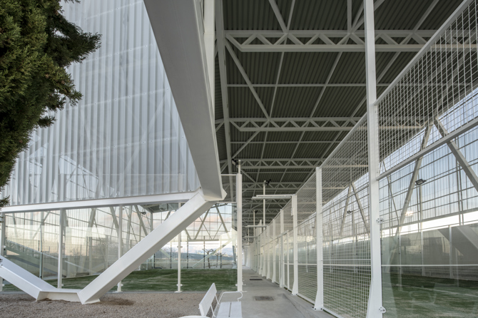 Hablar de la estructura es también hablar del proyecto ya que sin ella no se entendería la envolvente y su misión. La estructura como mecanismo de expresión, nace de la papiroflexia adaptándose al lugar, minimizando los puntos de apoyo, jugando con las sensaciones de recorrido, vacío y movimiento. Grandes cerchas son el patrón de lo que sucede dentro liberando aire.