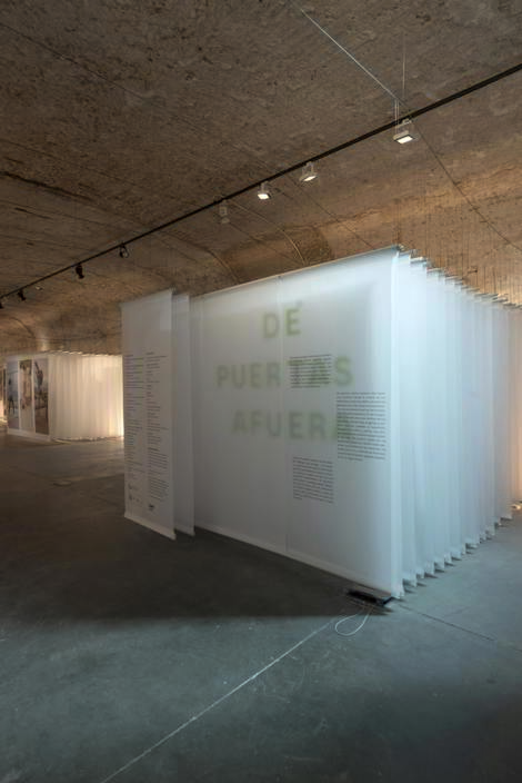 La exposición se convierte en otro espacio público, un espacio inmersivo abierto a todos que muestra, que reflexiona y celebra nuestros lugares de convivencia. DE PUERTAS AFUERA nos habla de los paisajes cotidianos a través de quienes los sienten así, para que quienes visitan la exposición puedan sentirlo de esta manera.
