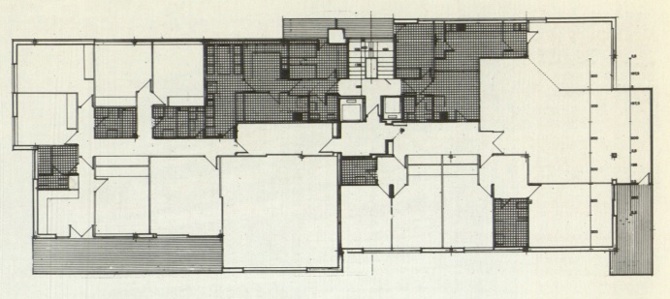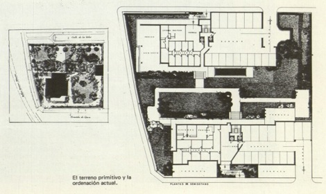 Las ordenanzas permiten además de metros (cuatro plantas) 40 m de fachada en línea y es claro que la propiedad horizontal los necesita en tanto el plano solar lo demanda. La solución de perdurar el palacete, o simular un solo dominio y privado, exige proyectar extramuros una discriminación en las alternativas plantas de altura, de acuerdo con el supuesto programa interior (planta de recibo, de dormitorios o habitaciones particulares, de hijos con leonera, de servicio abuhardillado etc.), esquema exterior que se superpone a las condicionantes, como son las distintas alturas, etc., y que solo se podría conseguir para mantener el tipo, como dicen los castizos. Pero no cuando el cliente sea o se pretenda comunidad, cuando las plantas se adjudican por sorteo y, por tanto, requieren las mismas o semejantes oportunidades, ya que como hemos dicho interfieren además de la altura, la orientación, las visibilidades, ruidos etcétera. Las plantas pues serán muy parecidas y, por tanto, su fachada se repetirá. ¿Y si las envolvemos en la misma epidermis? Pues que nos encontramos con que la monotonía ha sido siempre el recurso para crear grandes espacios y grandezas y que en nuestro caso serían grandes y monorrítmicas, ocupacionales. Donde hasta entonces había naturaleza orgánica. Tala de árboles y en su lugar... En el lugar de la transparencia superpuesta y permeabilidad del árbol, la construcción impenetrable del hombre que no conquista la naturaleza en su provecho. En lugar de alberos para todos nosotros, habitáculos para aquellos pocos y para siempre.