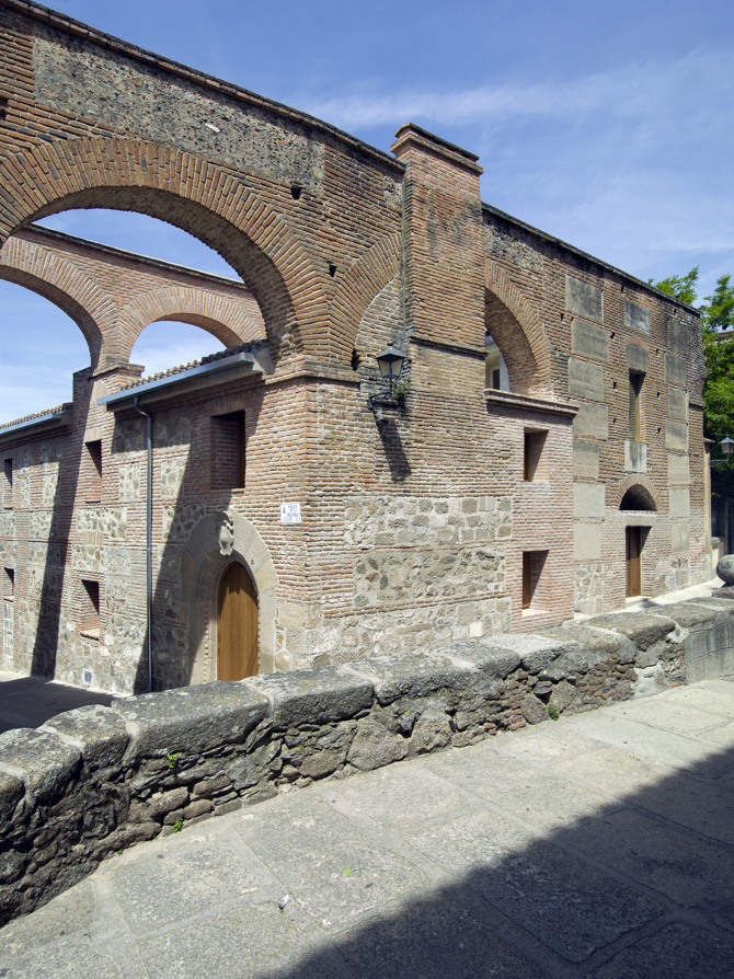Oropesa es conocida por su castillo, construido en 1402 como residencia de una familia de nobles de Toledo, que acometieron la construcción de una conexión aérea inconclusa entre el castillo y la iglesia de Nuestra señora de la Asunción, apoyada sobre arcos y muros que atraviesan la ciudad, en los que se incrustan las viviendas. Estas eran pequeñas y se encontraban muy divididas entre varias dependencias en ruinas, compartiendo dos patios detrás de una fachada, atravesada por amplios arcos de ladrillo.
