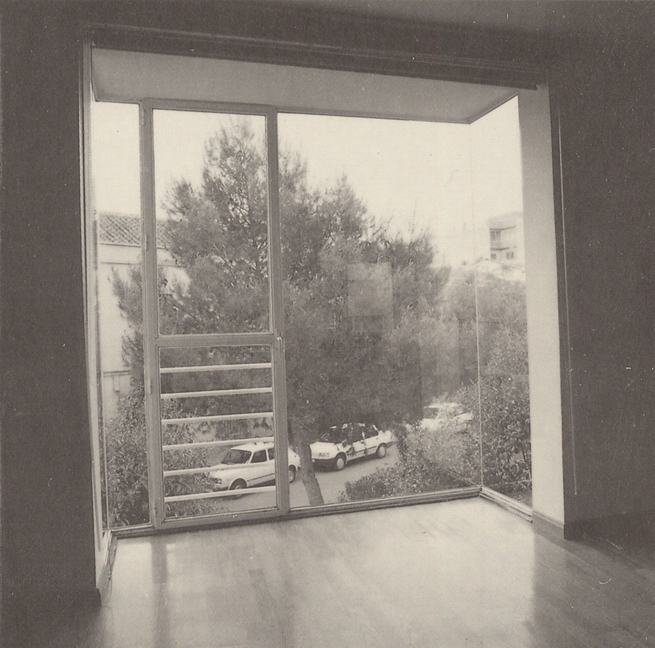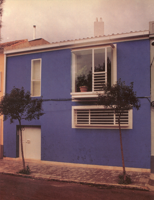 La fachada expresa el interior a través de los huecos distintos. La puerta enfatiza su carácter rebajado. El mirador se parece a una caja de cristal. El hueco vertical nos remite al balcón mientras que el hueco apaisado con lamas recuerda un enrejado. El interior de la vivienda tiene dos zonas diferentes. El salón se incorpora a los pasillos sin discontinuidad.