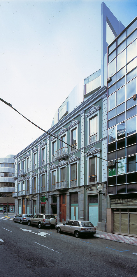 Estructura de hormigón armado, Losas aligeradas con bloques de árido volcánico. Fachada existente consolidada con estructura metálica.