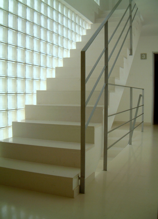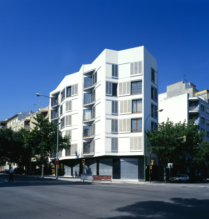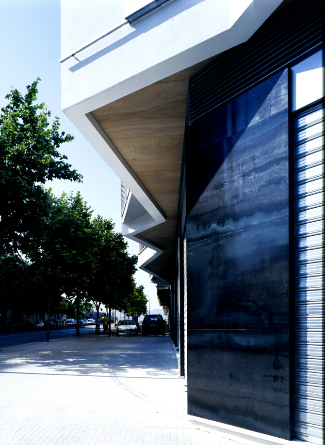 Edificio en esquina sobre un solar alargado y estrecho, prácticamente de una sola crujía. Límite del ensanche, cerca de la vía de cintura y próximo a centros comerciales.