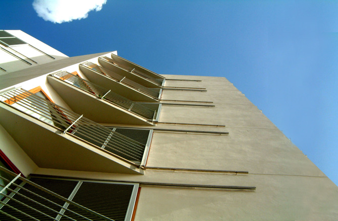 El programa se desarrolla en cinco plantas de viviendas, dos viviendas de una habitación y una de tres habitaciones, la planta baja se destina a locales comerciales. El acceso a las viviendas desde la planta baja se realiza por la calle San Vicente de Paul, dejando libre la otra fachada como escaparate de los locales, frente a la acera de mayor tamaño.