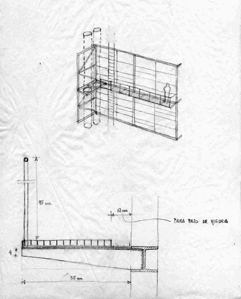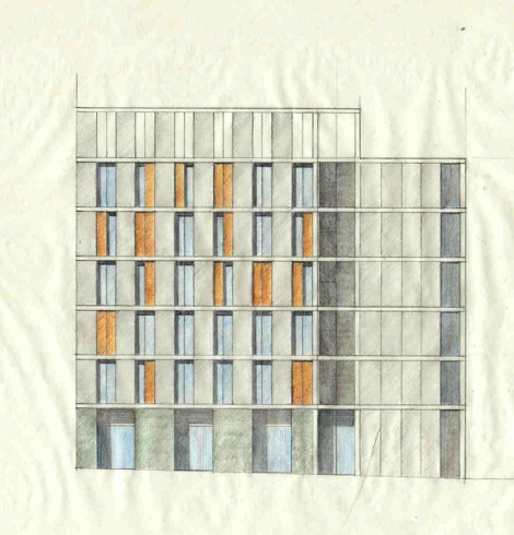 El antiguo edificio contaba con un patio central de 25 m². En resumen, dos prismas adosados. Uno, resuelve la fachada a la plaza y la continuidad con el alzado de la calle. Otro, englobando el núcleo de escalera, se eleva sobre el anterior hasta alcanzar la altura del vecino por la calle del Clavel.