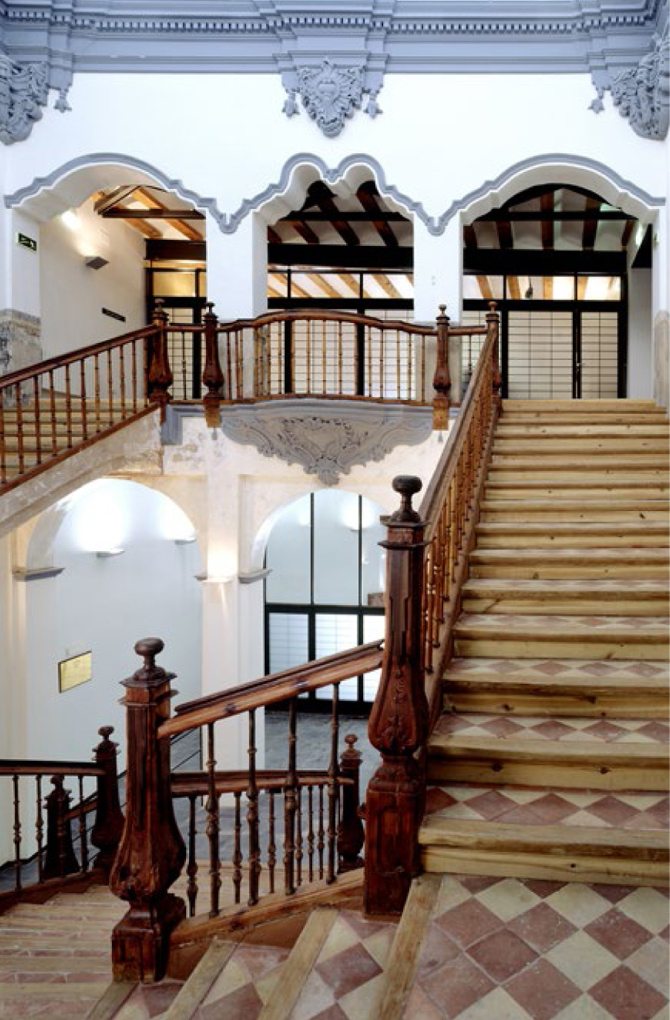 Para la descripción del presente proyecto es obligado partir del pie forzado del edificio existente. Se trata de una parte del inmueble denominado Antiguo Seminario de Nobles, catalogado en el Plan Especial con un nivel de protección estructural. Se permiten obras, por tanto, de conservación, consolidación, rehabilitación y reestructuración. Buscando sugerencias en la preexistencia es de destacar la nobleza y desproporción del vestíbulo de entrada y de la escalera de acceso al primer piso. Este espacio será uno de los condicionantes que organizarán la articulación del nuevo proyecto.