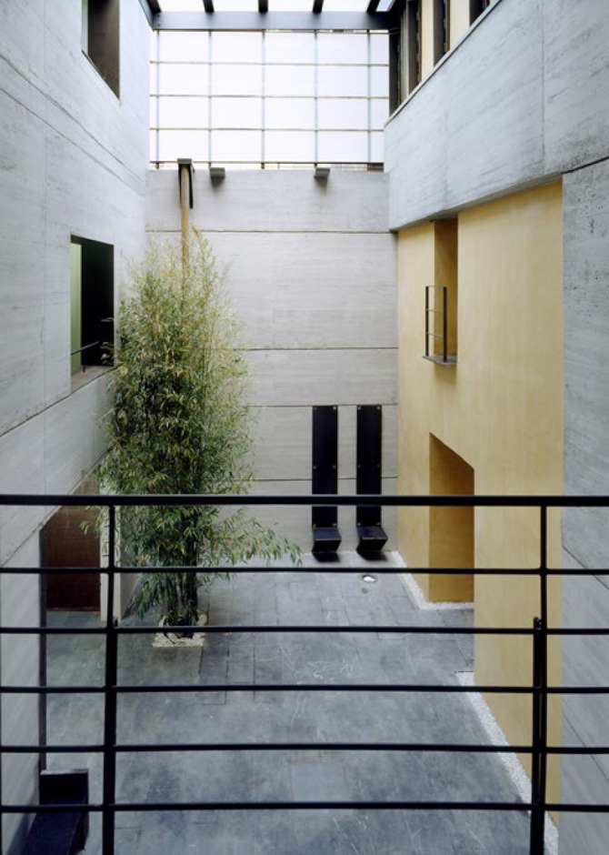 Por otra parte, la existencia del patio interior articulará las circulaciones y organizará la distribución a todas las dependencias garantizando la correcta iluminación natural, y actuando en el nivel de acceso como espacio abierto y controlado para el descanso y la relación.
