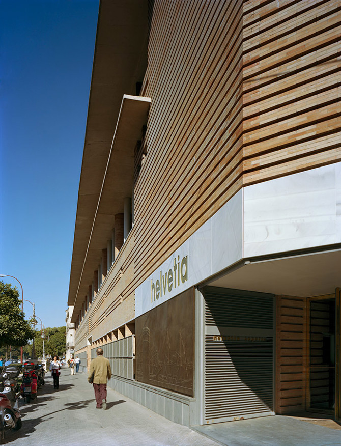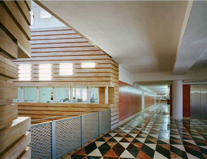 La nueva sede de Previsión Española trata de incorporarse al acervo arquitectónico sevillano sin aspavientos, sin llamar la atención, consciente de la gravedad que tiene actuar en un entorno en el que se hace sentir el aura de una construcción tan importante como la Torre del Oro. Ser respetuoso con la ciudad, poder estar en Sevilla, implica, por un lado, la integración en el trazado, y por otro, la adecuación de la escala. El problema aparece, con toda su crudeza, cuando se pretende el respeto rehuyendo una dudosa mímesis cuyos resultados no siempre escapan de la forzosa incoherencia en la que se mueven quienes confunden fines y medios; en arquitectura no es tan fácil eludir la congruencia entre ambos. La estructura formal de la nueva sede de Previsión Española no resulta muy diferente, en medidas y proporciones, a aquella que presentan tantos edificios públicos sevillanos.