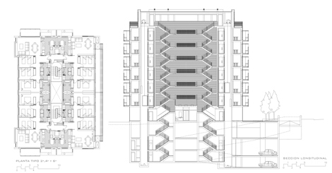 Panta Tipo y Sección Longitudinal por patio - Elena Fernandez Salas -