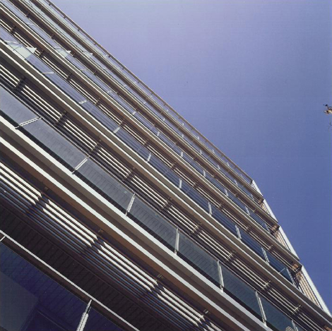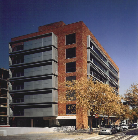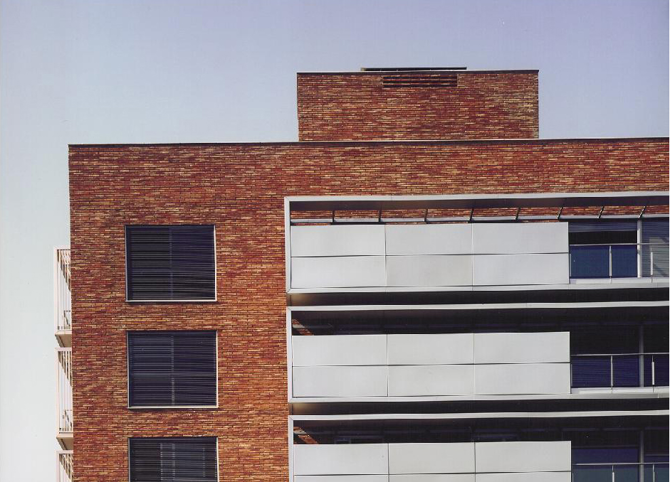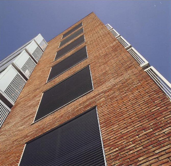Estructura hormigón con forjados losa reticular. Cerramientos ladrillo manual cerámico+paneles aluminio