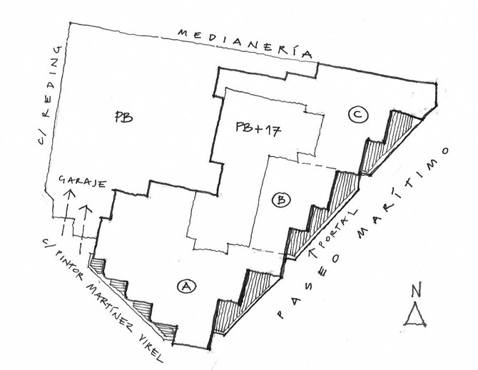 Sus terrazas son diáfanas y continuas, su basamento estructural con unos pilares escultóricos de hormigón armado muy bien construidos, pero sobre todo con una inteligentísima geometría de plantas giradas para buscar las mejores vistas y soleamiento. Este gesto tan importante fue la clave de esta singular obra arquitectónica. La macla funcional resultante es de gran talento, al aprovechar al máximo todas las grandes ventajas que ofrecía su excepcional ubicación. Esa imagen pura y lineal ha sobrevivido al paso del tiempo bastante bien al no haberse cerrado ninguna de las terrazas de la fachada principal.