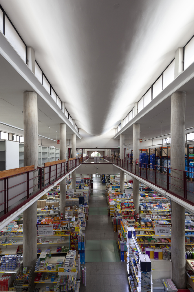 Volumen rotundo de tres plantas y un marcado desarrollo longitudinal. Su carga representativa se acentúa, en clave posmoderna, en la fachada vinculada al viario de acceso, cuya entrada se sitúa a nivel de planta primera, llevando a un interior de organización basilical que bebe de fuentes racionalistas y clásicas. Con una clara organización estructural, la nave se segmenta en franjas transversales que integran aseos, escaleras, ascensores y pasarelas en planta superior. El conjunto es rematado en su eje central por un lucernario de gran fuerza plástica. La luz cenital alcanza la planta bajo rasante mediante una serie de huecos acristalados dispuestos rítmicamente en el forjado. El proyecto muestra el interés de la arquitecta por el detalle elaborado, con rasgos influidos, en ocasiones, de su colaboración con el Studio PER (1981–1985).