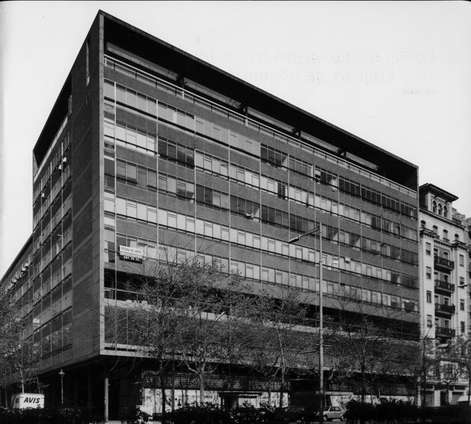 Es interesante comparar las fotografías en escorzo de Harry Walker y el edificio de viviendas CYT para comprender hasta qué punto Mitjans confía en los valores de su arquitectura (moderna) como respuesta a las nuevas condiciones de la ciudad en crecimiento. Sin embargo, tanto en este caso, como en posterior edificio Monitor, también de oficinas, la estructura es metálica y la fachada, situada en el plano exterior, es un muro cortina elemental, en el que la retícula que dibujan maineles y antepechos define una piel tersa, extremadamente ligera, vidriada y transparente.
