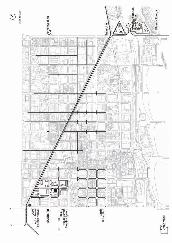 Está la Arquitectura del Media-TIC, un lugar donde el soft acontece al hard. Desde un principio hemos tenido el convencimiento de que el encargo era coherente con nuestras ideas. Nos interesa el modelo de ciudad digital, donde lo que cuenta es el conocimiento, la información, las patentes, la comunicación y el valor añadido. Un modelo de conocimiento capaz de superar el modelo de los recursos materiales.