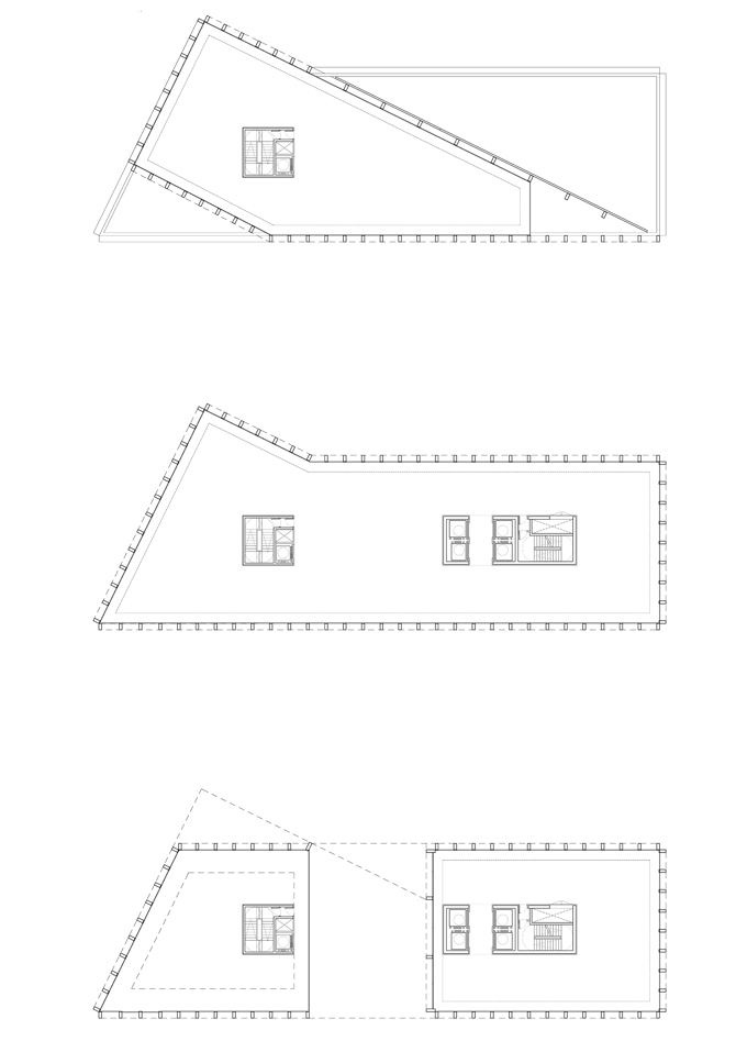 Estas operaciones dan al volumen un aire escultórico, intensificado por el voladizo de la torre y su arista resultante, así como por el cuerpo horizontal, de fachada transparente que abraza a la nueva plaza triangular. Por su diseño diáfano, la torre de oficinas ofrece una gran flexibilidad de uso gracias a la inexistencia de pilares o estructuras intermedias. La configuración de las distintas plantas es diferente, lo que permite una cierta especialización funcional de los programas, más allá de la separación fundamental entre el cuerpo horizontal, que alberga la producción y la docencia audiovisual, y la torre donde se encuentra las áreas de gestión empresarial.