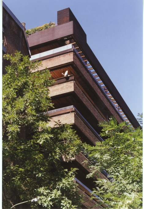 Emparentado con otras características obras de su autor, como las de la calle José Ortega y Gasset, muestra este edificio un refinado ejercicio brutalista en que se combinan materiales tradicionales y tecnológicos para crear una volumetría rotunda y de fuertes claroscuros.