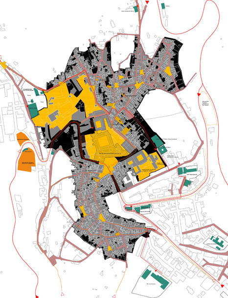 - No construcción de nuevos edificios, ni del aparcamiento en el centro del casco, sustituido por aparcamientos disuasorios situados en solares vacíos estratégicamente localizados.