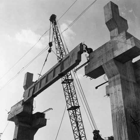 El índice de prefabricación en la construcción de esta factoría fue muy alto. También se prefabricaron las vigas carril de los puentes grúa, y todos los demás elementos que formaban las estructuras, salvo los pilares y las vigas trianguladas que hubo que hacer en algunas naves para apoyar las cubiertas y servir de vigas carril a los puentes grúa. La singularidad de estas vigas trianguladas pretensadas nos ha llevado a hacer una ficha aparte de ellas incluida en las obras pretensadas. El conjunto de esta factoría es una de las mayores, si no la mayor obra de hormigón prefabricado que se ha hecho en España.