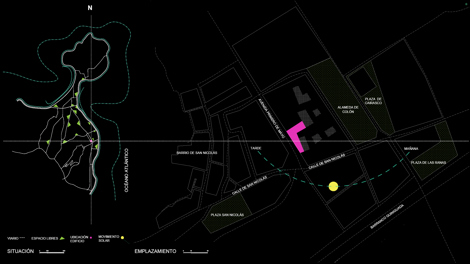 El espacio pasa de ser interior a exterior cuando varía las dimensiones, pero los límites, las fronteras siguen limitándolo, condicionándolo, dándole un sentido diferente según su materia y origen. Los límites transforman el espacio interior y lo convierten en ilimitado pudiendo integrarse y fundirse con ellos. Cuando el límite se llama medianera, fachada o alineación de calle, como el caso en el que nos encontramos, la arquitectura condiciona a la propia arquitectura. Así esta, excava o se amolda, buscando espacios, adaptándose a las formas impuestas, se desarrolla como formas infinitamente manipulables.