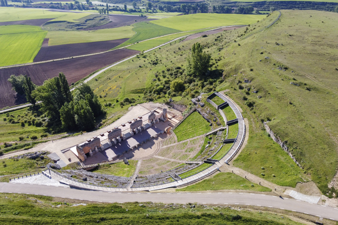 La restauración del Teatro Romano de Clunia se ha realizado en dos fases: un primer proyecto, concluido en 2010, en el que se configura el conjunto de la cávea del teatro mediante la creación de una pasarela superior, escaleras de acceso y distintos niveles del graderío, y una segunda fase, concluida en 2020, que acomete la intervención en la escena y el postescenio.