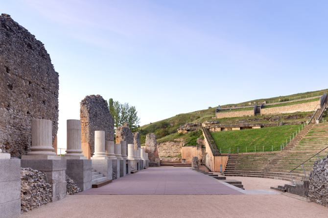 Las intervenciones en el teatro constituyen el final de un proceso de investigación que se inicia con la excavación y posterior interpretación arquitectónica, cerrando así un proceso de recuperación que permite comprender la arquitectura desaparecida mediante la restauración de los restos de la escena y la incorporación de copias de fragmentos de las columnas que la conformaban, constituyendo un excelente fondo para la realización de representaciones y espectáculos culturales que se llevan a cabo habitualmente en el teatro.