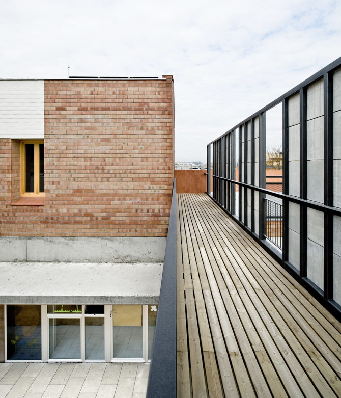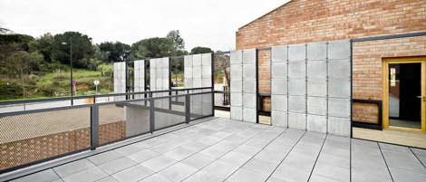 Además del patio a sur en contacto con las aulas, proponemos un patio a norte para el verano, un patio de entrada y salida, y un patio externo, ya en el espacio público adyacente. Los materiales utilizados procuran un ambiente neutro y austero, huyendo voluntariamente del exceso de estímulos permanentes. El movimiento, el ornamento y el color los aportarán sobradamente los pequeños nuevos usuarios y sus cuidadores, que podrán renovarlos repetidamente y de manera mucho más efectiva que nosotros.