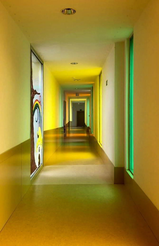 La obra busca generar un ambiente estimulante y acogedor para los niños y las niñas. Se diseña con una escala pequeña, permitiendo un entendimiento mejor del edificio y una atención más individualizada y abarcable. Mediante el uso de la iluminación y el color caracteriza los distintos espacios, atendiendo a las necesidades y oportunidades del programa. La conexión con los patios y la iluminación que aportan permiten flexibilidad y amplitud en las aulas. Se refuerza esta sensación con la disposición de una vista al jardín suroeste desde el porche, que unifica las salas en un único espacio exterior común, íntimo y controlable.
