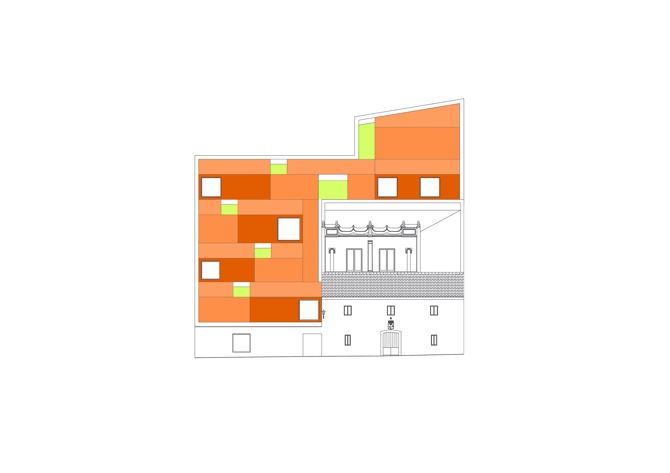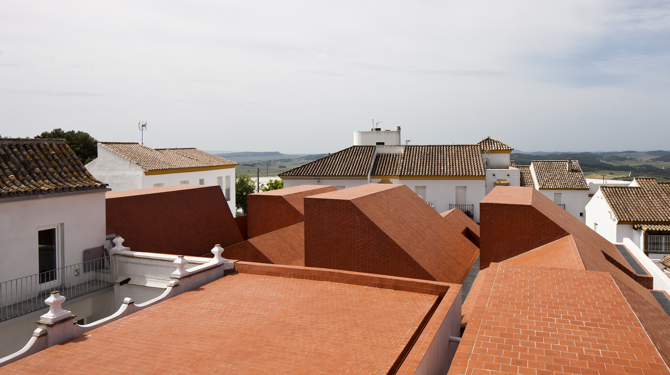 VACÍOS URBANOS. Medina Sidonia posee un particular relieve que permite la continua contemplación de sus cubiertas. Los lienzos encalados de su caserío se rematan con faldones cerámicos que observados desde el encrestado perfil de la ciudad aparecen como una única obra de arcilla que se amolda a la topografía. Su trama urbana ha alternado históricamente llenos y vacíos en similar proporción, salpicándose con patios, corrales y pasajes que esponjaban su trazado. Intervenir en estos vacíos tiene algo de acomodarse en ellos, de cobijarse en los huecos y porosidades consolidados por el tiempo.